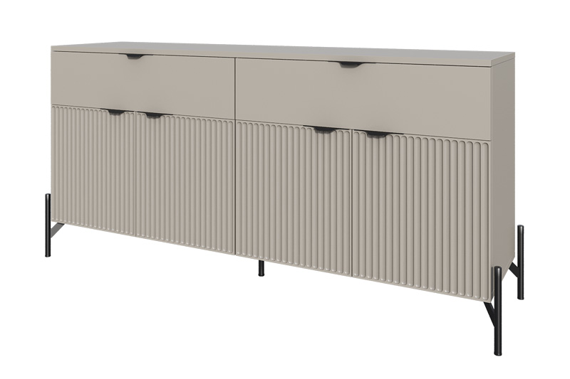 Комод «Нео» — это выразительное сочетание минимализма и архитектурной пластики. Его строгая геометрия смягчается ритмичной текстурой фасада, создавая эффект глубины и динамики.